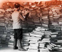 But they had a problem: their staff wasn’t sufficiently versed in Jewish culture to adequately organize and catalog all of the material they were plundering. So they created a forced labor brigade from the Vilna Ghetto made up of poets and intellectuals, including Zelig Kalmanovitch, who had been YIVO’s co-director before the war. Every day they were taken from the ghetto to the YIVO building, where their job was to sort, catalog, and pack rare Jewish cultural treasures for shipment to Germany.